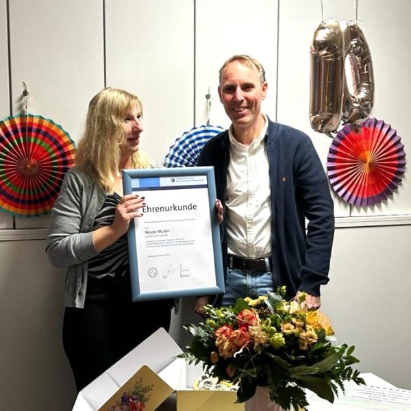 Wir bedanken uns herzlich für zehn Jahre, in denen Nicole mit vollem Einsatz das Bade Dächer Team unterstützt und bereichert hat – und das immer hilfsbereit, freundlich und mit einem Lächeln auf den Lippen. Die Firmenleitung und ihre Kollegen freuen sich auf viele weitere Jahre der wertschätzenden Zusammenarbeit.